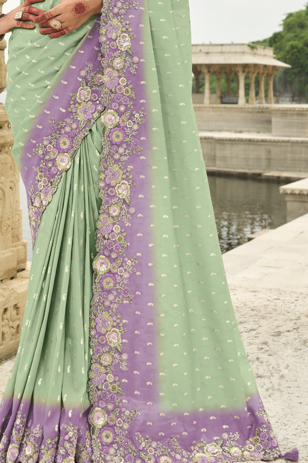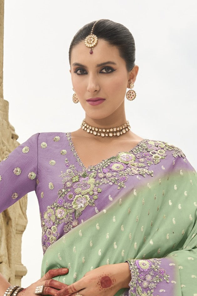PURE SILK DOUBLE COLOUR HEAVY WORK SAREE