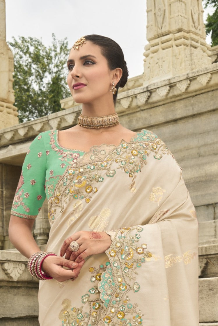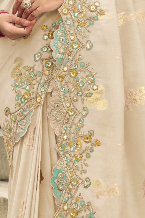 Saree Fabric : Silk With Embroidery Cut Work Border ,Stone,Sequence With Embroidery Butti Work All Over Saree